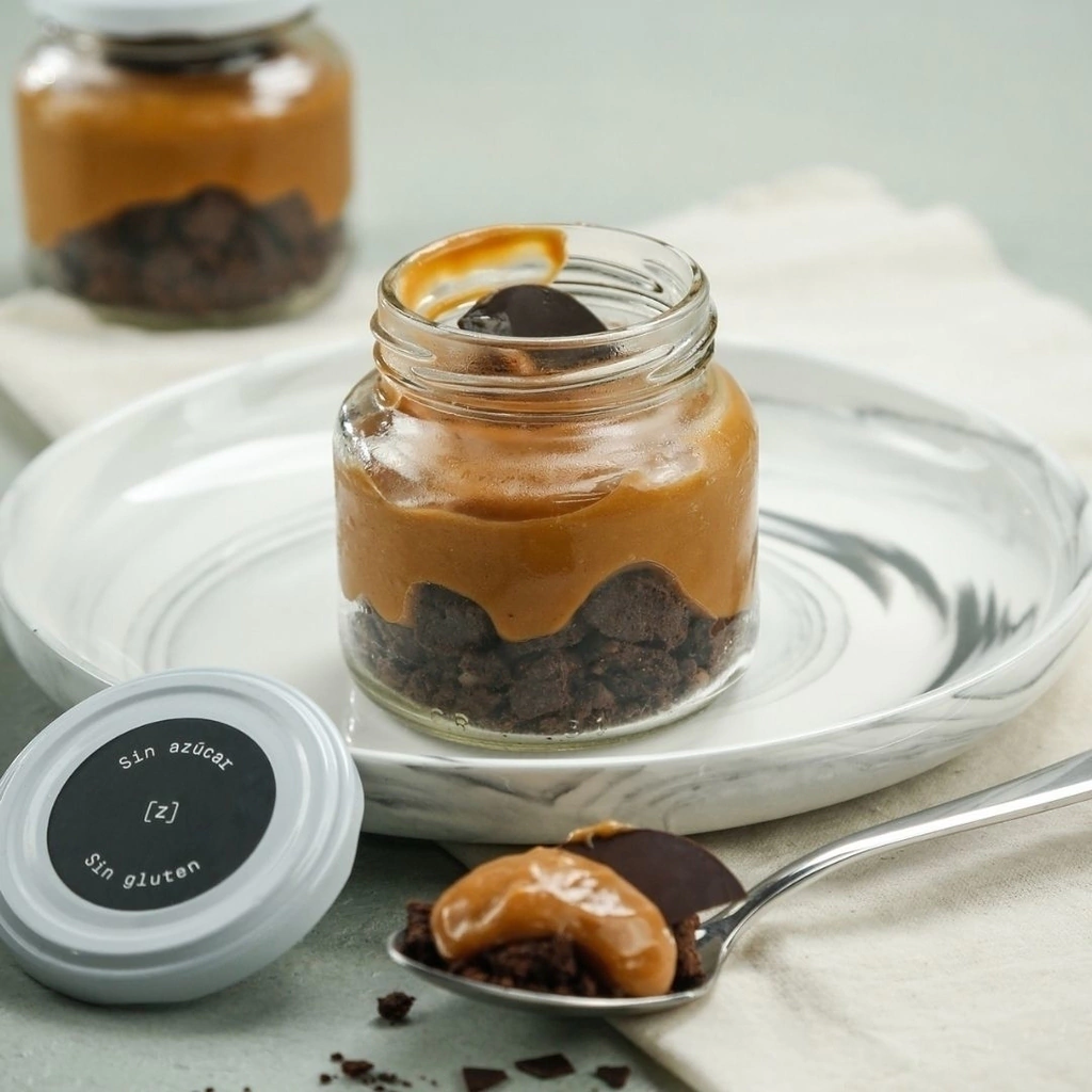 Dulce de leche repostero dietético, Almendras, Agua, Cacao amargo en polvo, Chocolate dietético semiamargo 55% cacao, Albúmina pasteurizada, Gelatina en polvo sin sabor, Sal marina, Stevia.